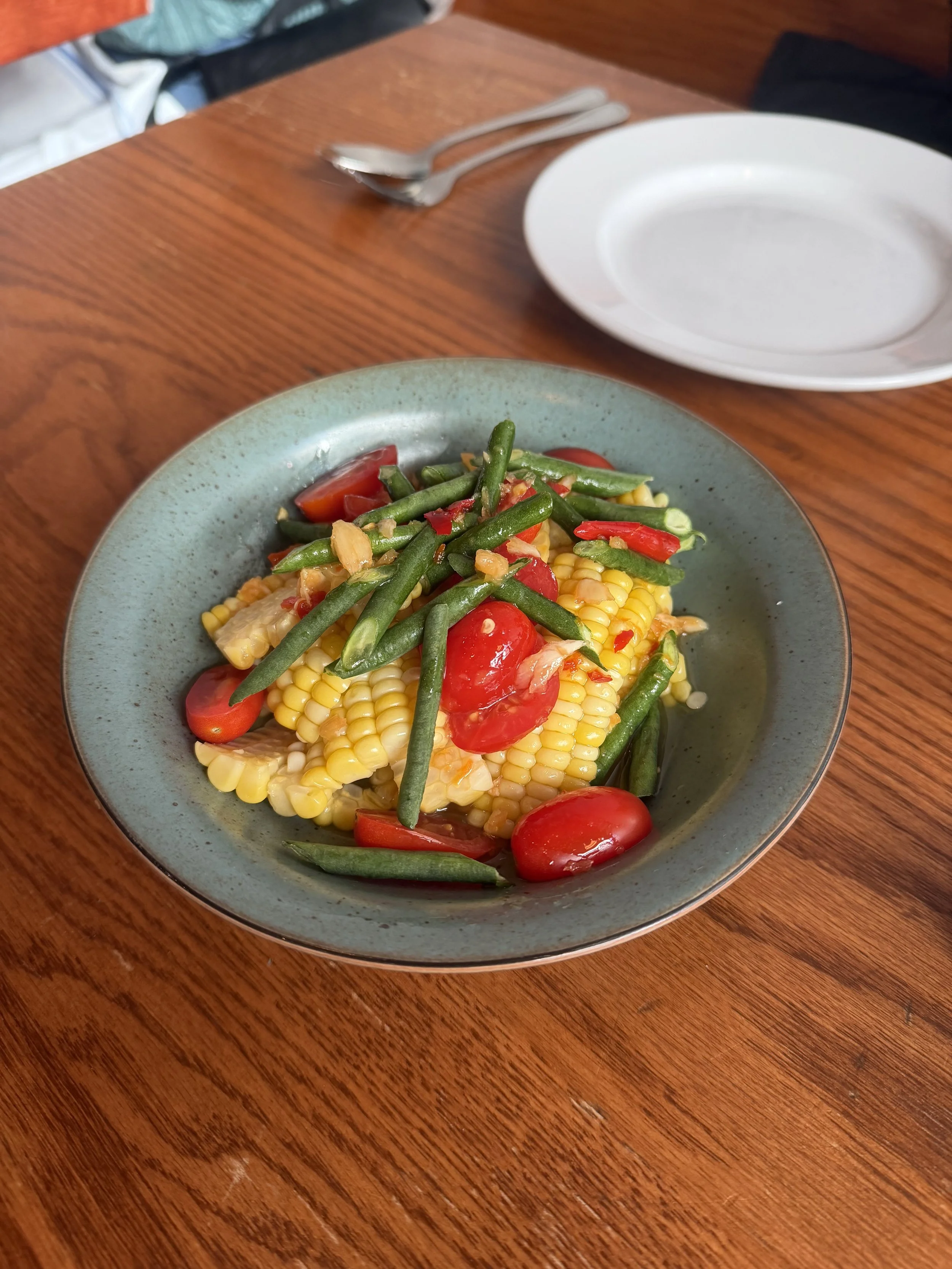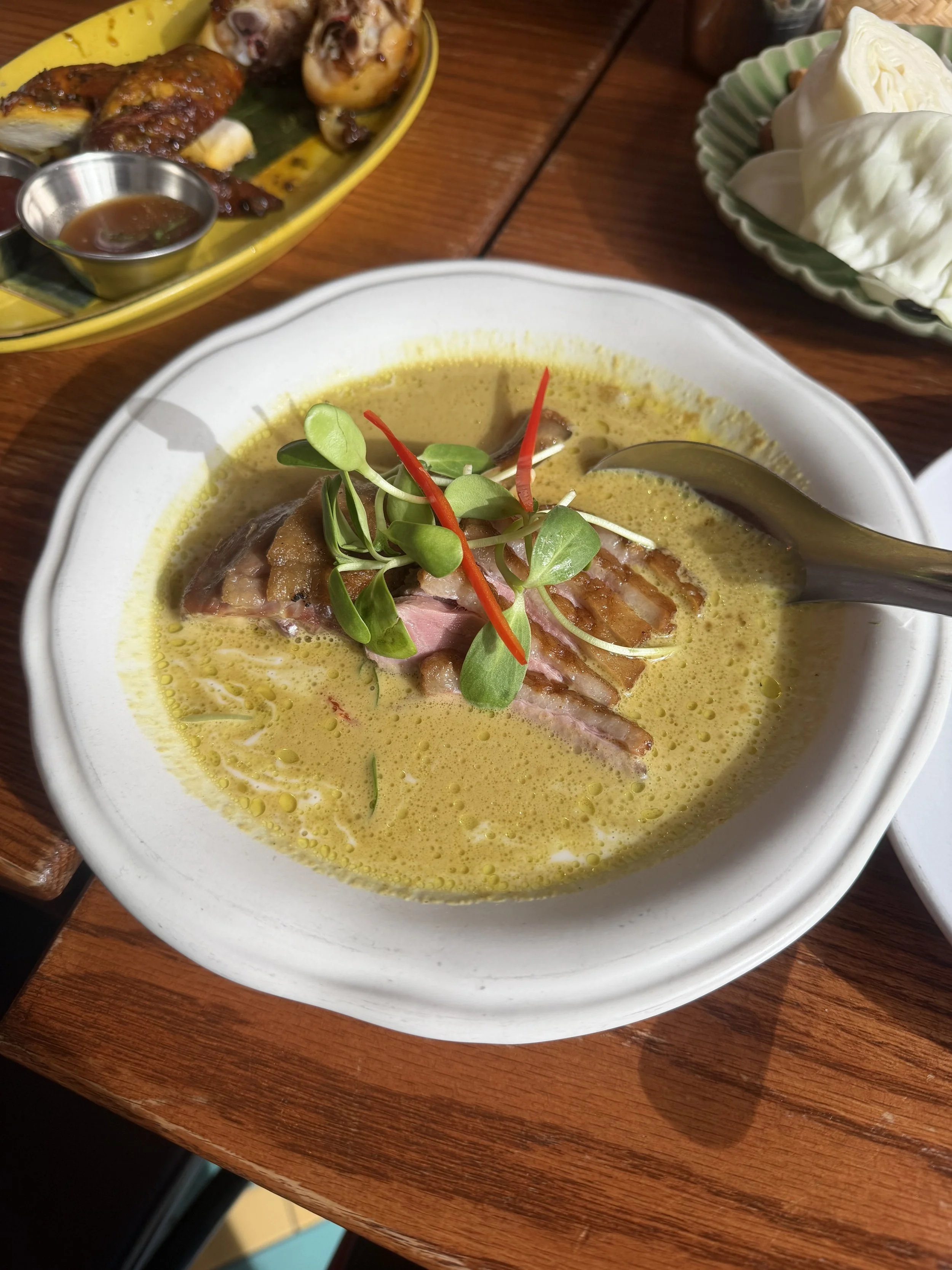 During my lunch at Fish Cheeks, temperatures had dipped into the negatives in the East Village, so I was craving something warm and comforting — but also fresh and light. The Rawaaeg Duck Curry and Fresh Corn Salad combination struck that balance perfectly. Each bite of the salad brought a bright, almost spring-like freshness to my palate, while the curry anchored the meal with deep, savory, nutty richness. The duck was tender and flavorful, but the broth was the true standout — layered, aromatic, and deeply satisfying.